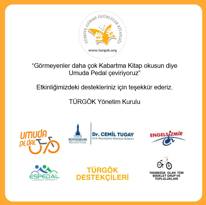 Bu sene 4.sünü gerçekleştirdiğimiz ve artık yeni yıl ile Ocak ayına sportif bir başlangıcın geleneği olan Bisiklet Sürüş Etklinliğimize katılımın çok, farkındalığı yüksek ve sorunsuz bir şekilde gerçekleştirdik. Bu sene 18 Ocak'ta Üsküdar Belediyesi ev sahipliğinde İstanbul'da, 25 Ocak ta İzmir BüyükŞehir Belediyesi ev sahipliğinde Umuda Pedal - Eş Pedal ve gönüllülerin katılımı ile hem İzmir Körfezi ve Üsküdar Belediyesi desteği ile 2 farklı şehirde pedallar Görmeyenler için basıldı.