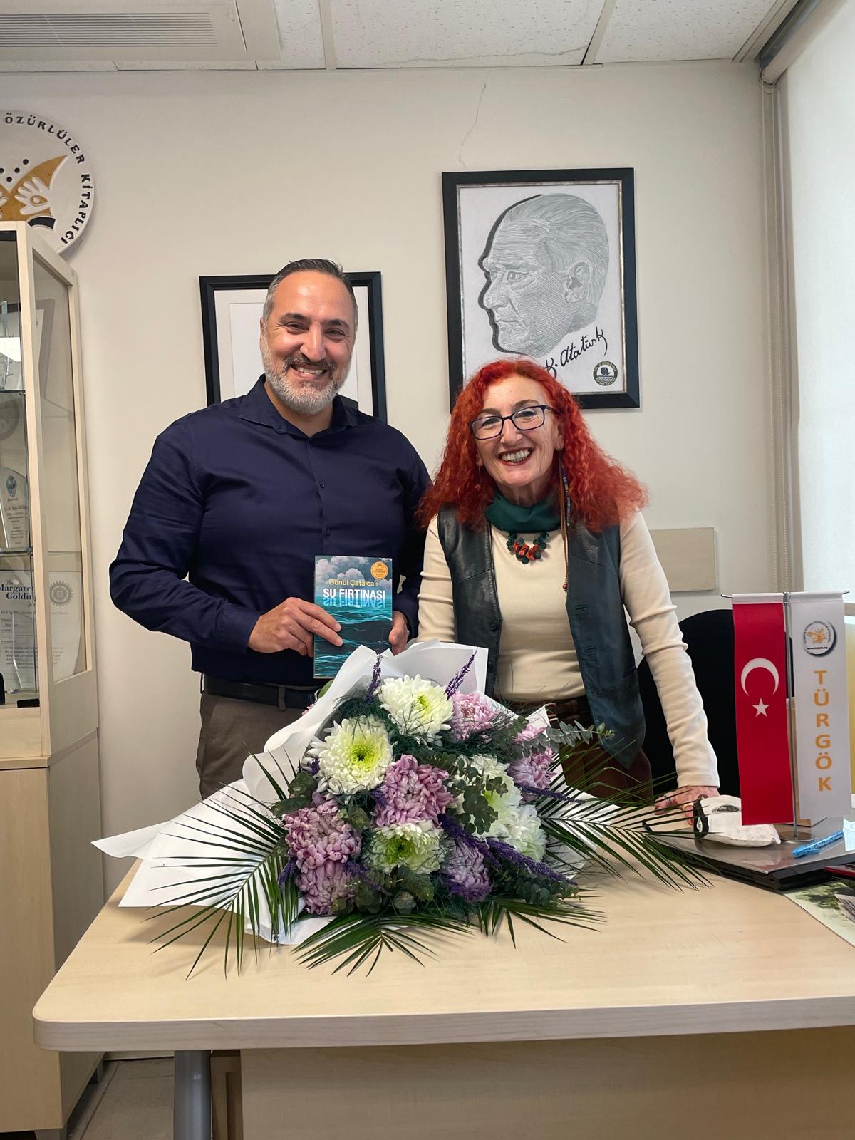 TÜRGÖK Kitap Kulübü’nde bu ay Gönül Çatalcalı’nın “Su Fırtınası” romanını okuduklarını belirten Düriye Ayyıldız, “Bu ay Sayın Çatalcalı konuğumuz oldu. Kitap üzerinde uzun süre söyleştik hem de kitaplarımızı imzalattık” dedi. Ayyıldız, yazar Gönül Çatalcalı’yı ağırlamaktan büyük mutluluk duyduklarını söyledi.